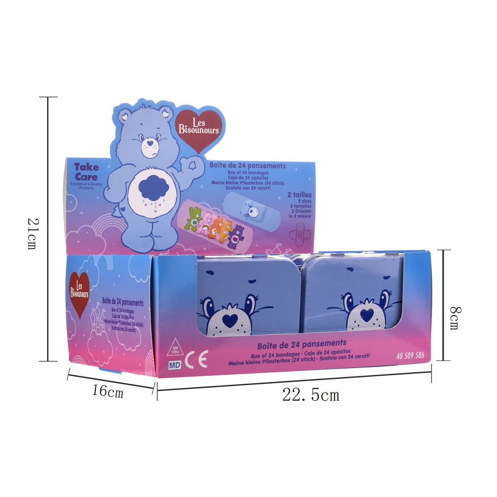 Discover our Care Bear dressings, adorable and comforting, to protect little injuries with gentleness and style. Their cheerful design will brighten up everyday life while letting the skin breathe. Easy to remove without pain, they provide instant comfort to your children during times of injury.